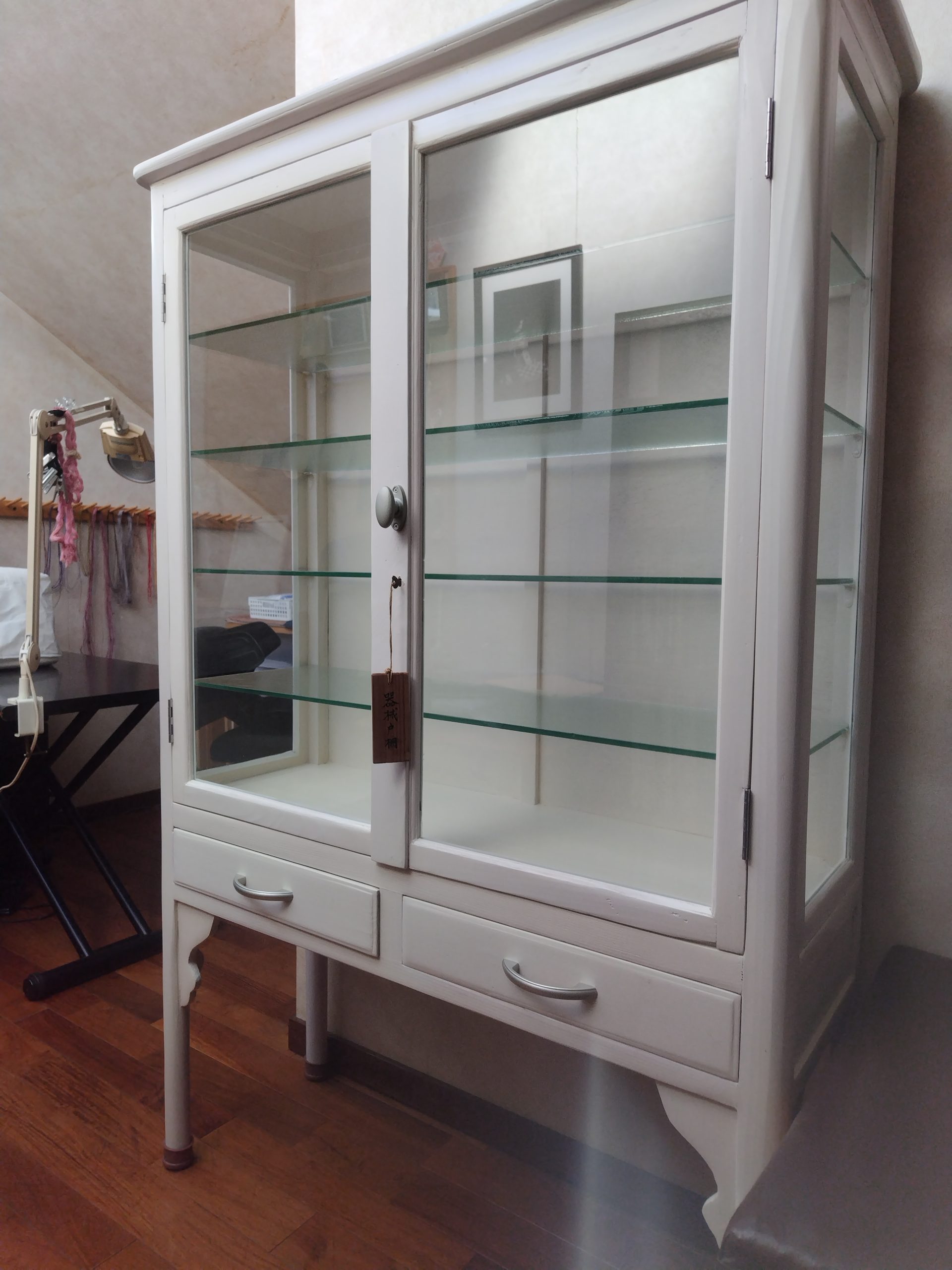 とても古いガラスキャビネットの再塗装です。ご自身でペンキを塗っていたのを、きれいに研磨して再塗装を行いました。ガラスを留めていた石膏パテを取り除き、ガラス交換もしましたよ🤞金具も取替、サイズが合わないものは塗装で綺麗に仕上げました。古いものでも手を加えてあげれば綺麗に使っていけますね🍀