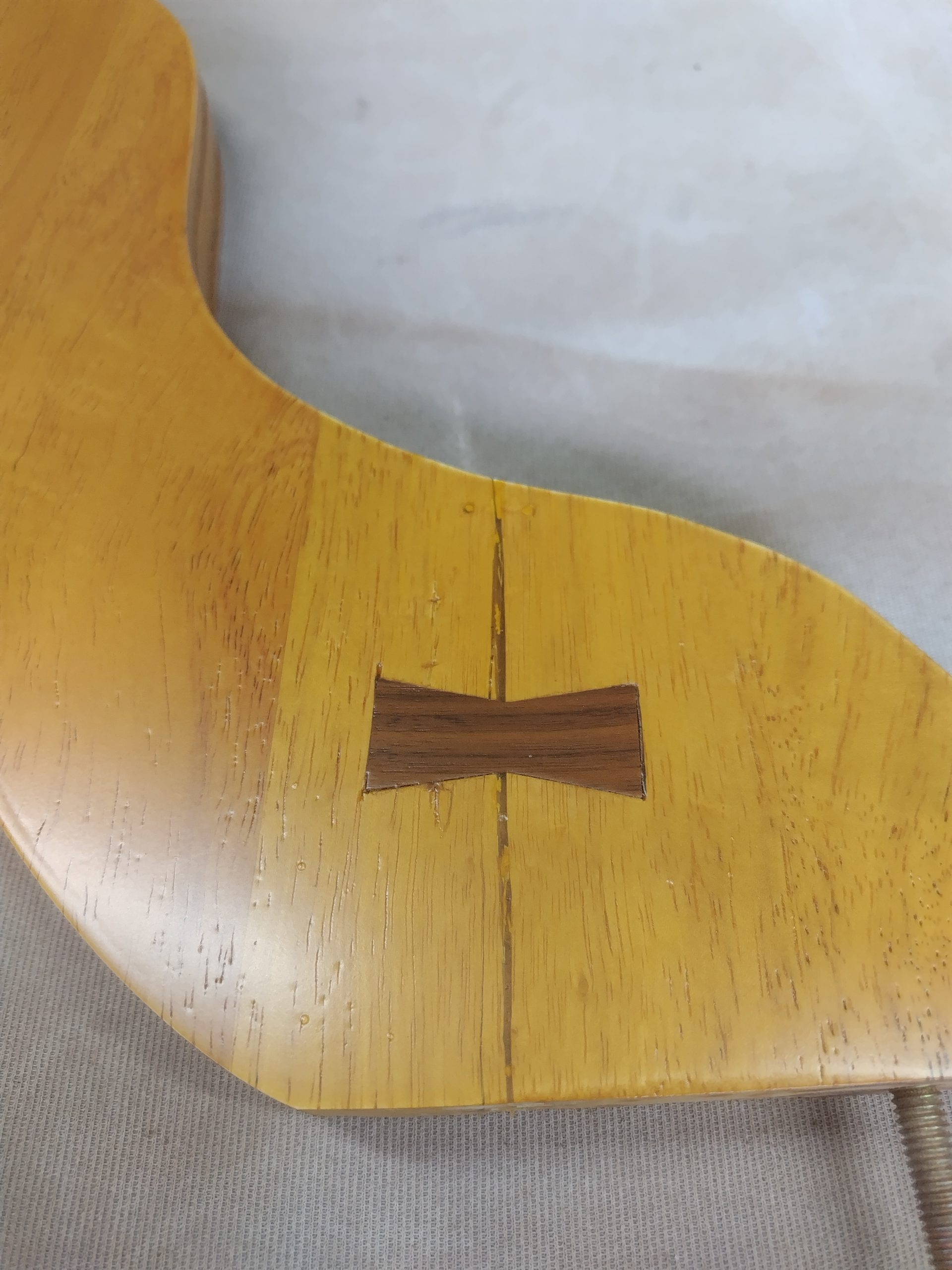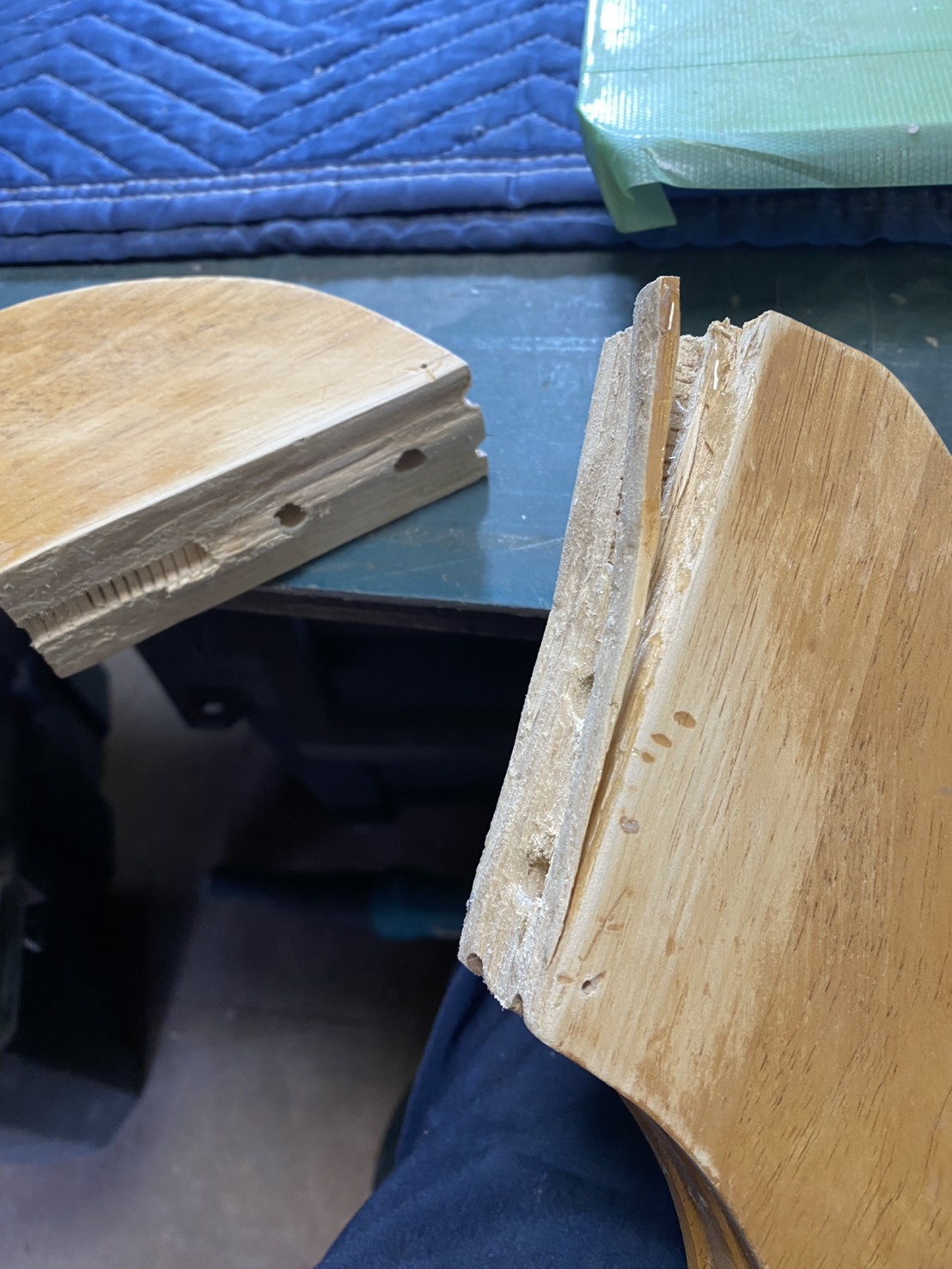 テーブルの脚の亀裂補修です。中にダボを入れ直して、接着だけでは強度が出ないので、ちぎり加工をしました。修理のときは「なんで割れてしまったのか」と原因を探って、直す方向性を考えていきます。