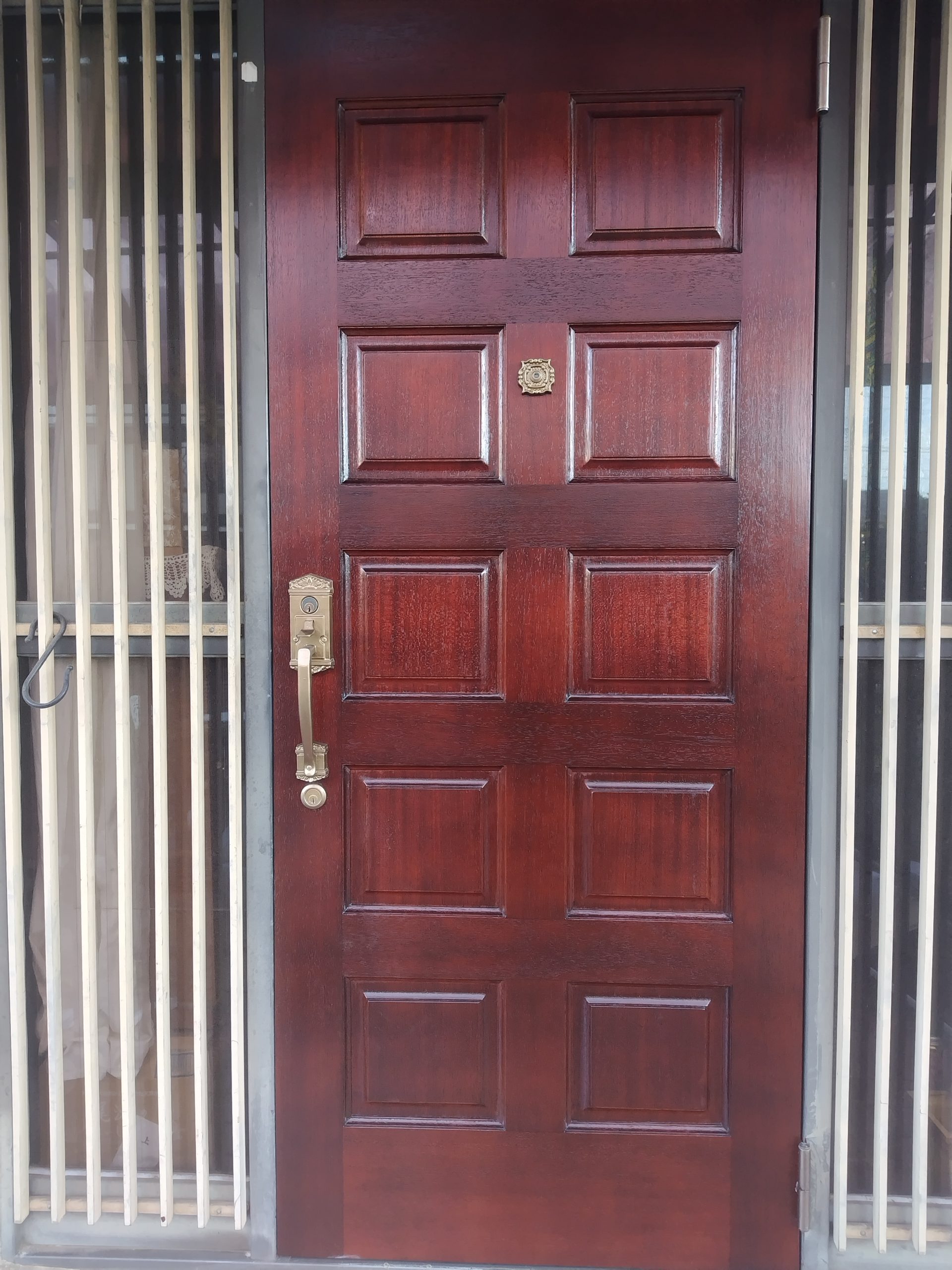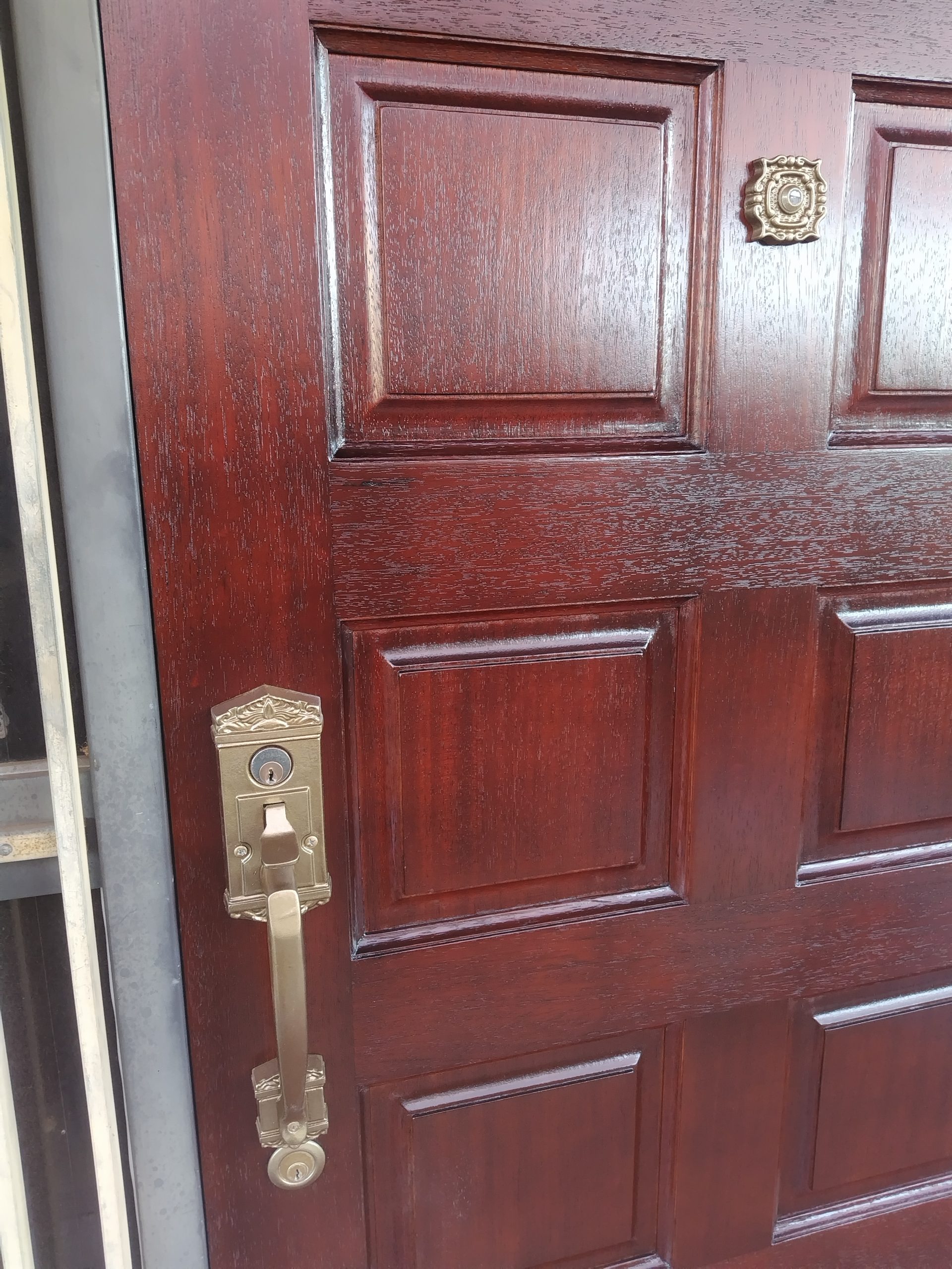 お家の顔である木製玄関ドアを、綺麗にしていきます✨️錆や汚れた取手金具も綺麗にしますよ🎶塗装が剥がれてしまってご自身で何度か塗り替えてあっても一度全部剥離して、再塗装すれば新品同様によみがえります〜☺️ドアごと交換するよりも、安価でできますよ🤞