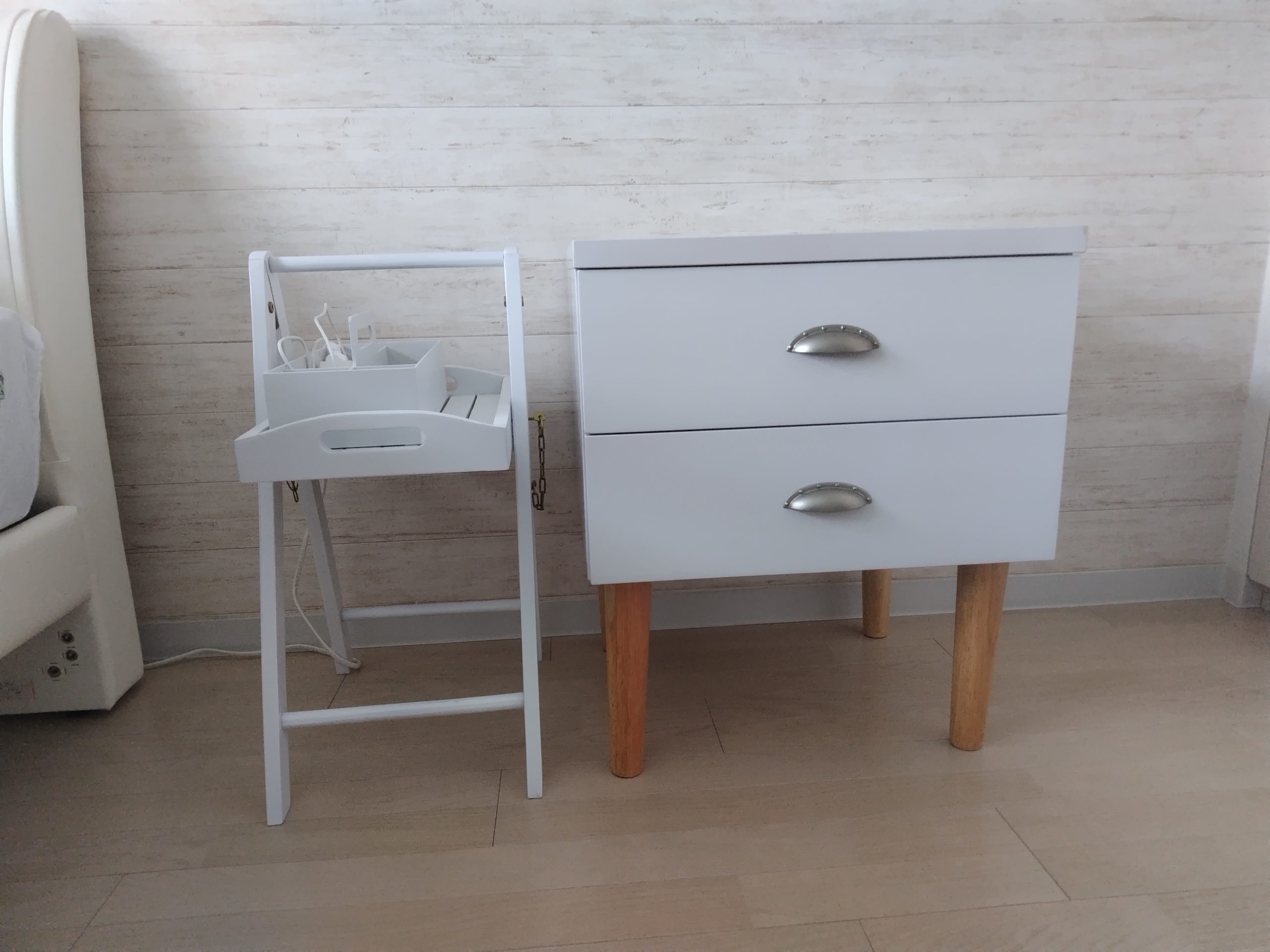 ベッドサイドで、高さを合わせて使い勝手の良いようにしましたよ🤞